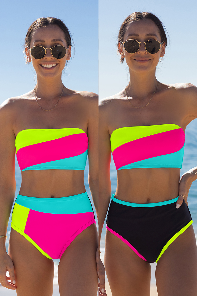 Floral Print Patchwork Blue Two-piece Swimsuit