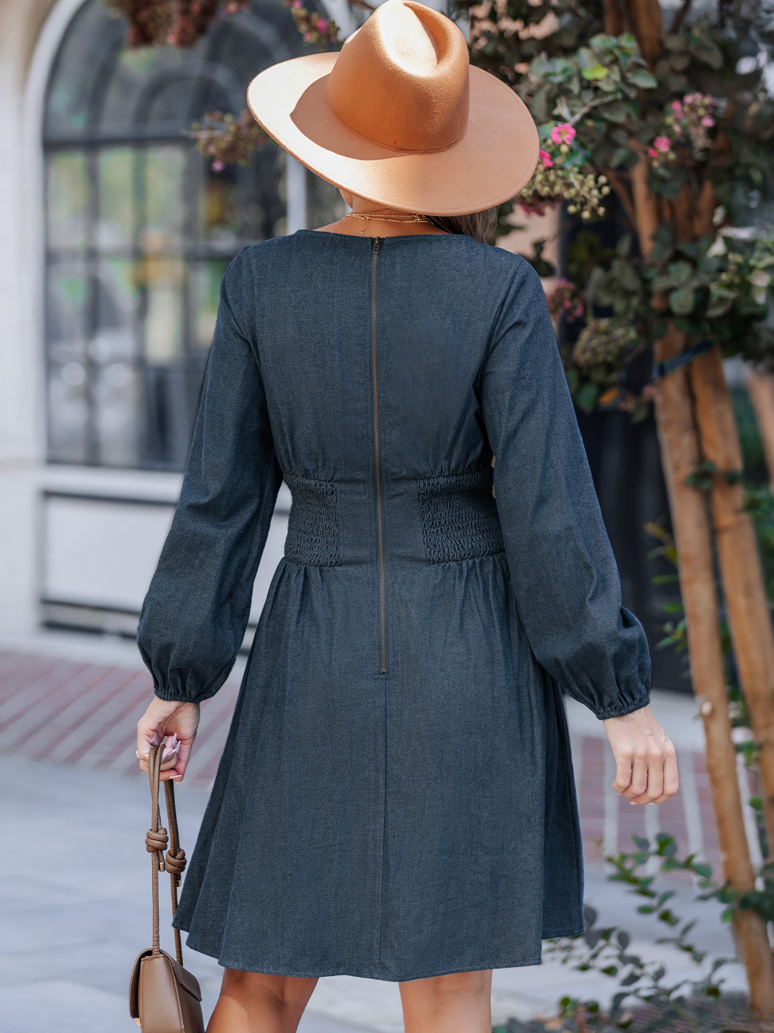 Cotton Casual Solid Color Lantern Sleeve Denim Dress