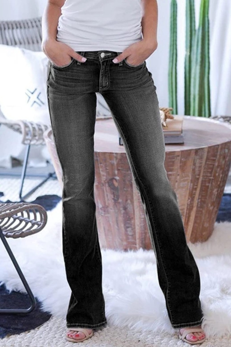 High Waist Basic Solid Color Boot Cut Jeans