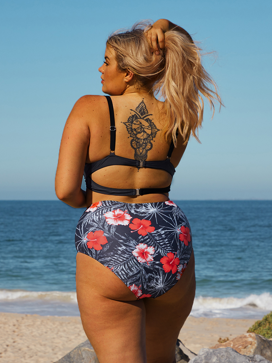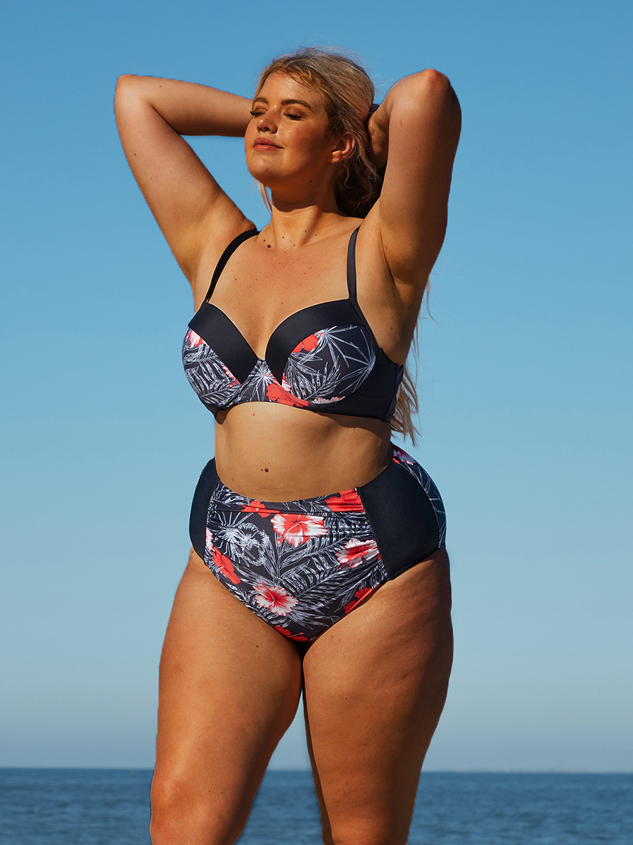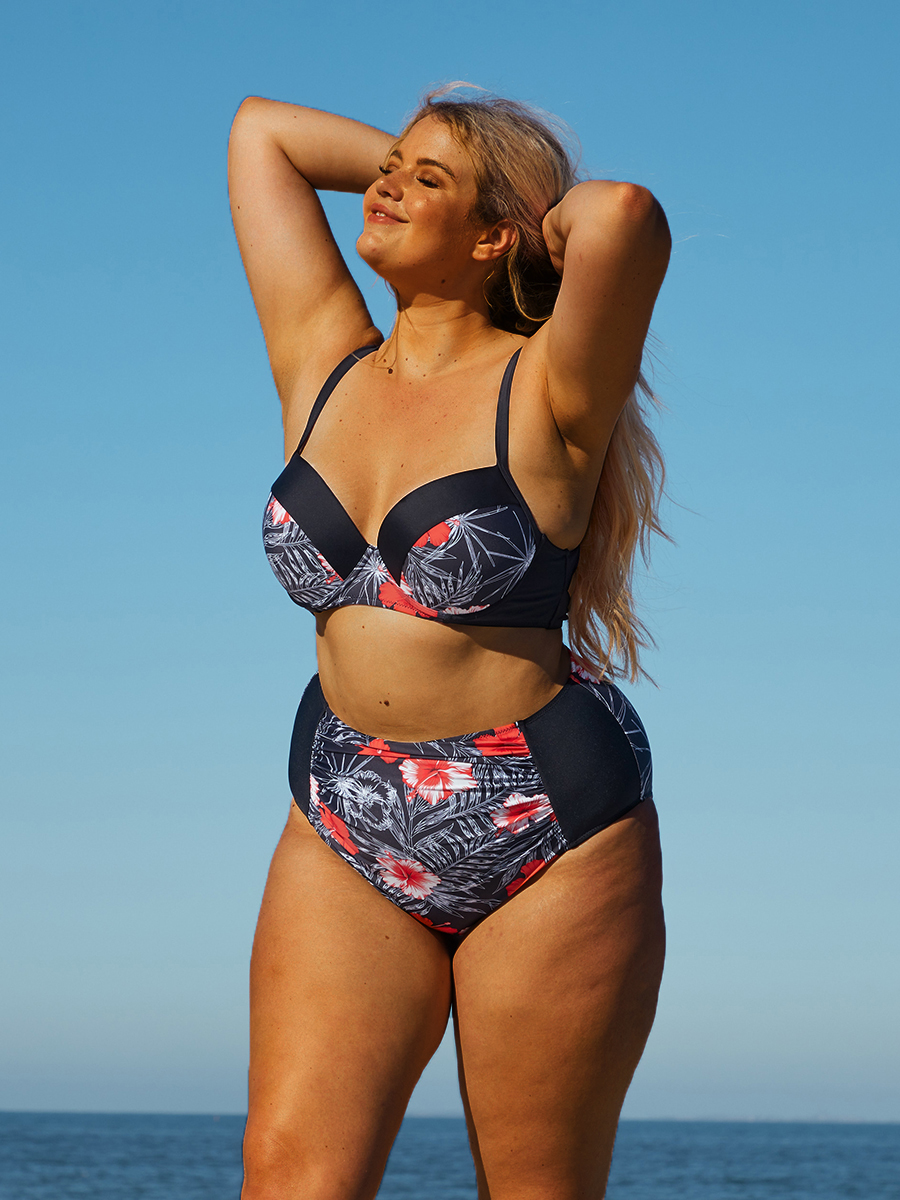 Plus Size Floral Print See-through Bikini Set