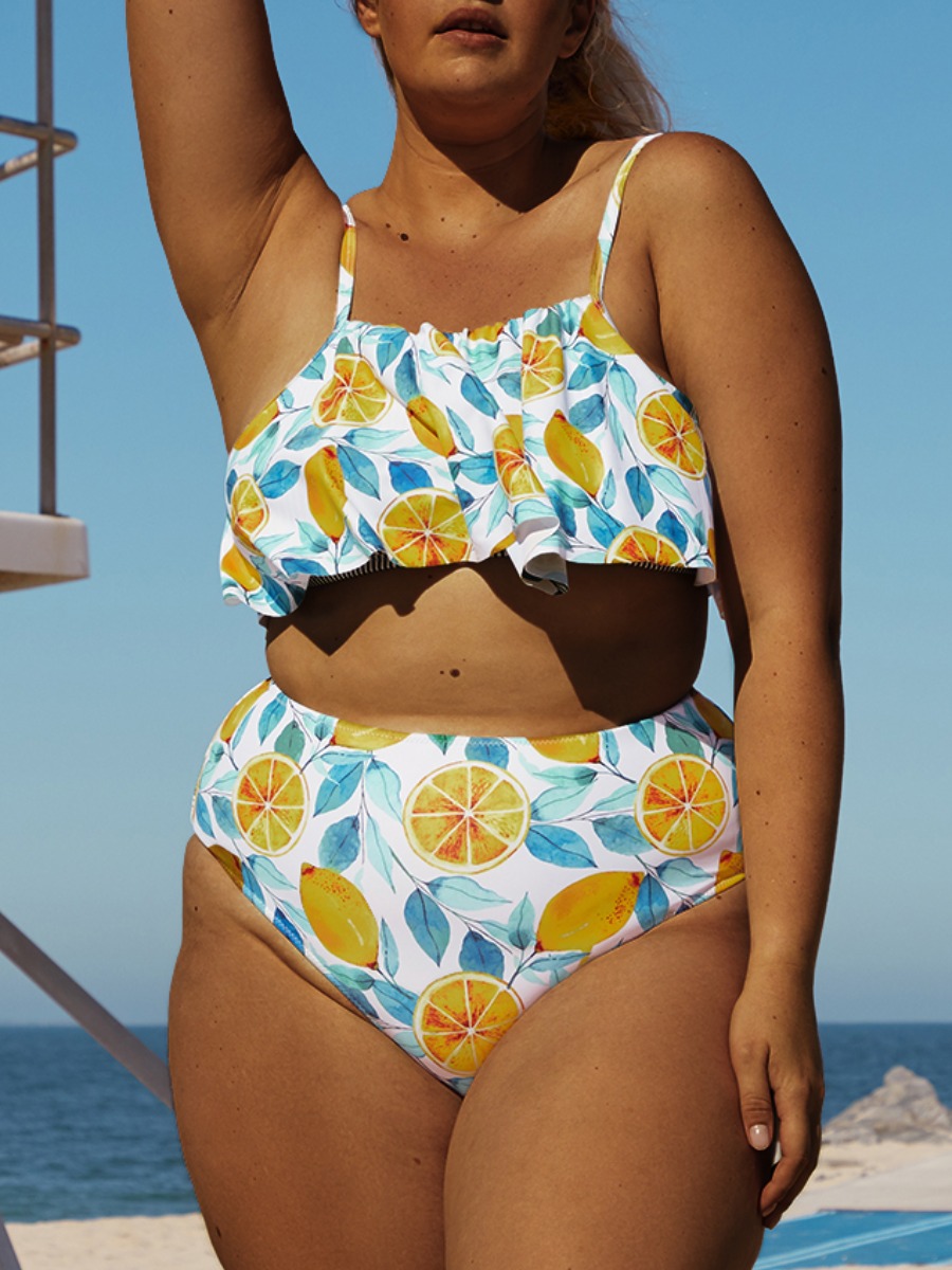 Plus Size Ruffle Fruit Printed Bikini Set