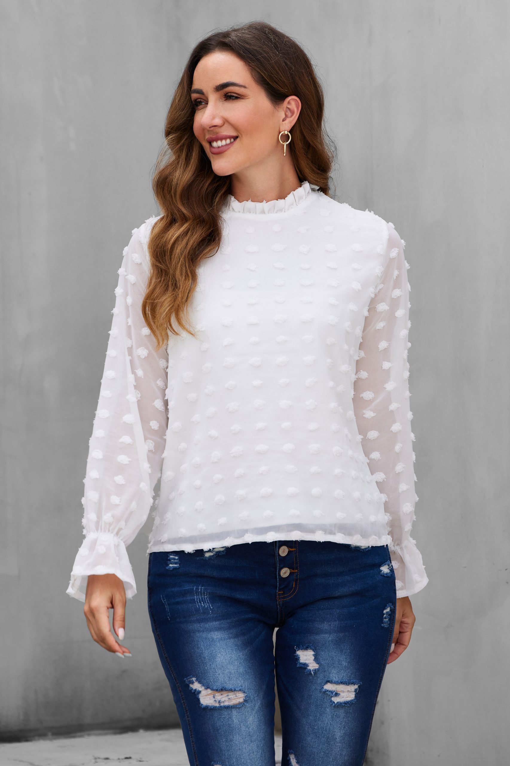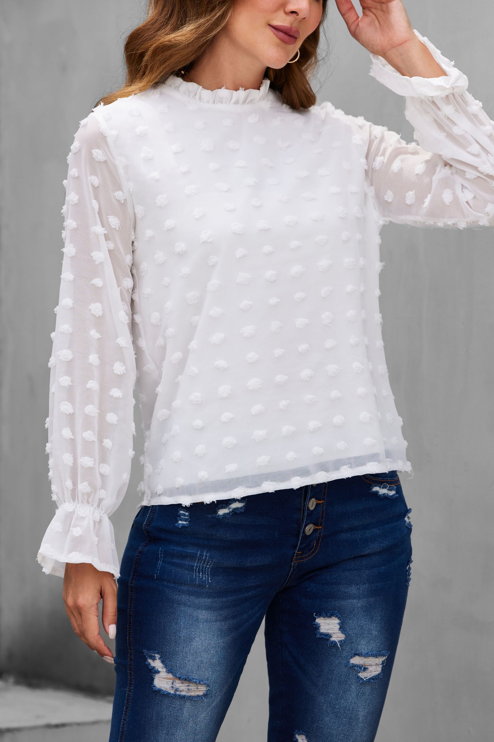 Rufffle Trim See Through Blouse