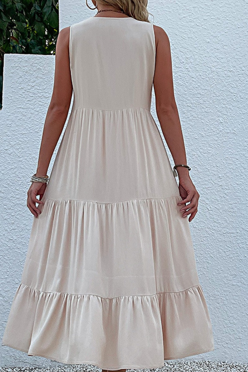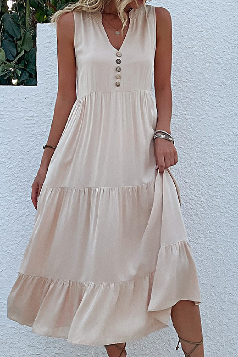 Ruffle Solid Color A Line Midi Dress