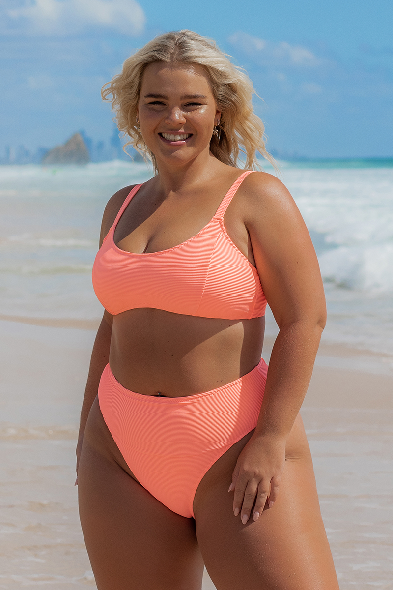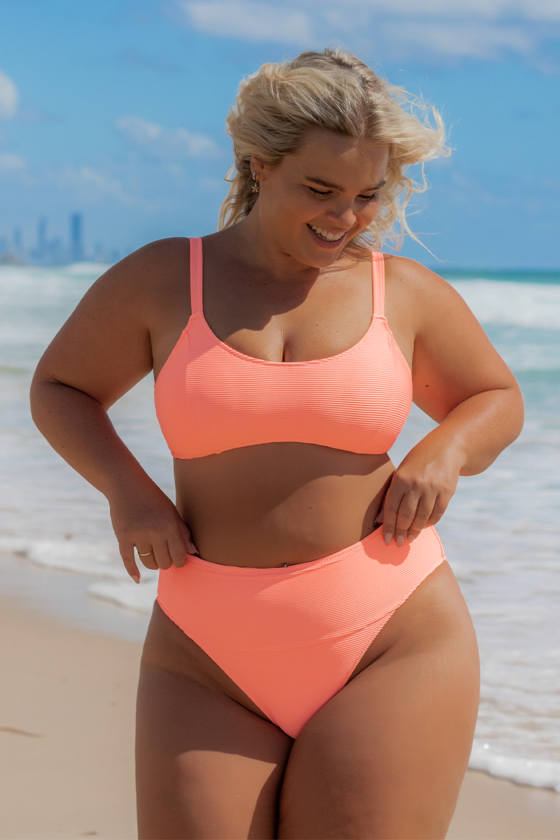 Oh so flirty, this Sporty Peachy Tank Bikini Set is the perfect choice for your next vacation. The bikini top features a tank silhouette. Matching bottom features a high waist cut that offer your comfort in the best ways.