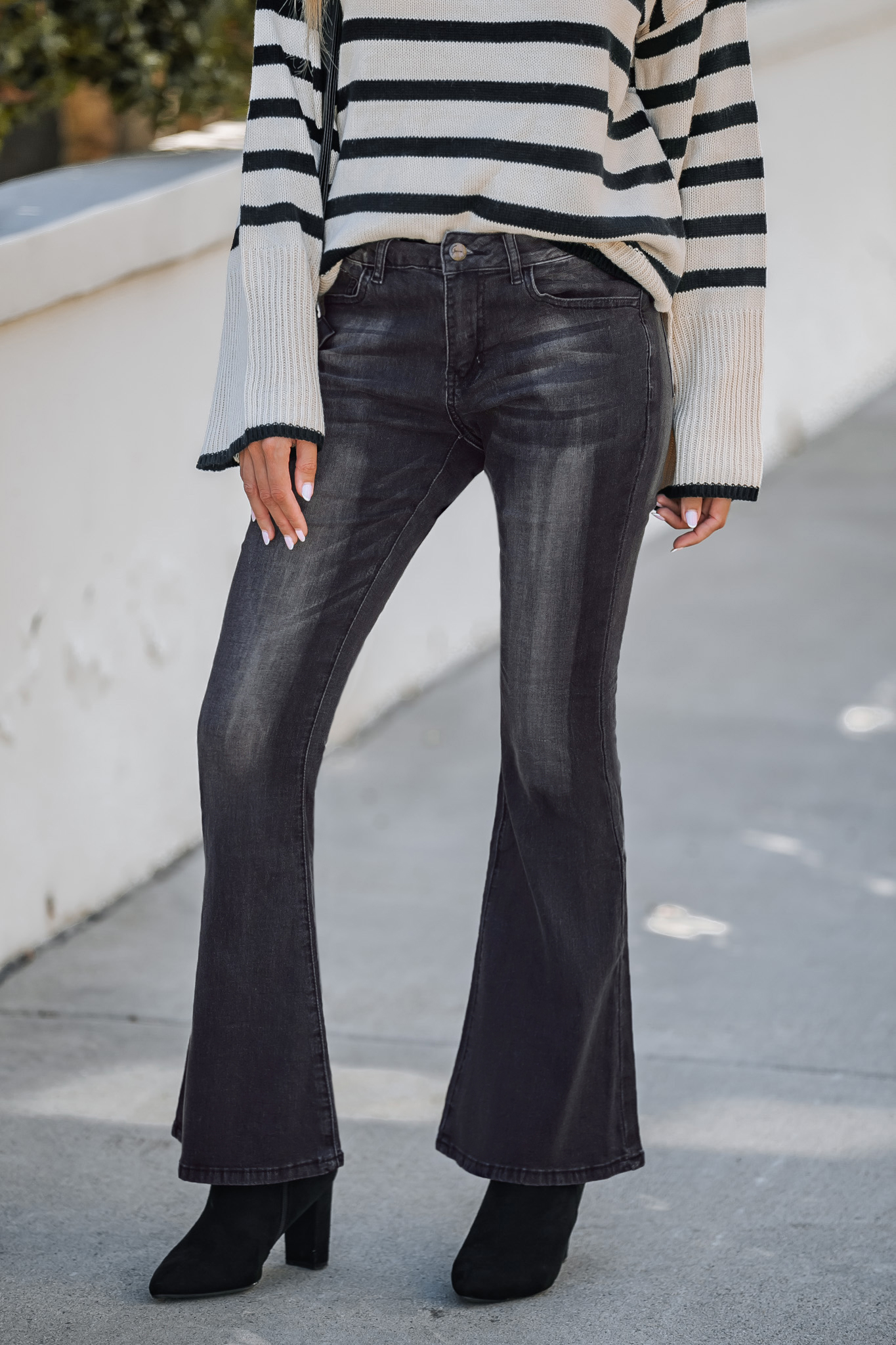 High Waist Basic Solid Color Boot Cut Jeans