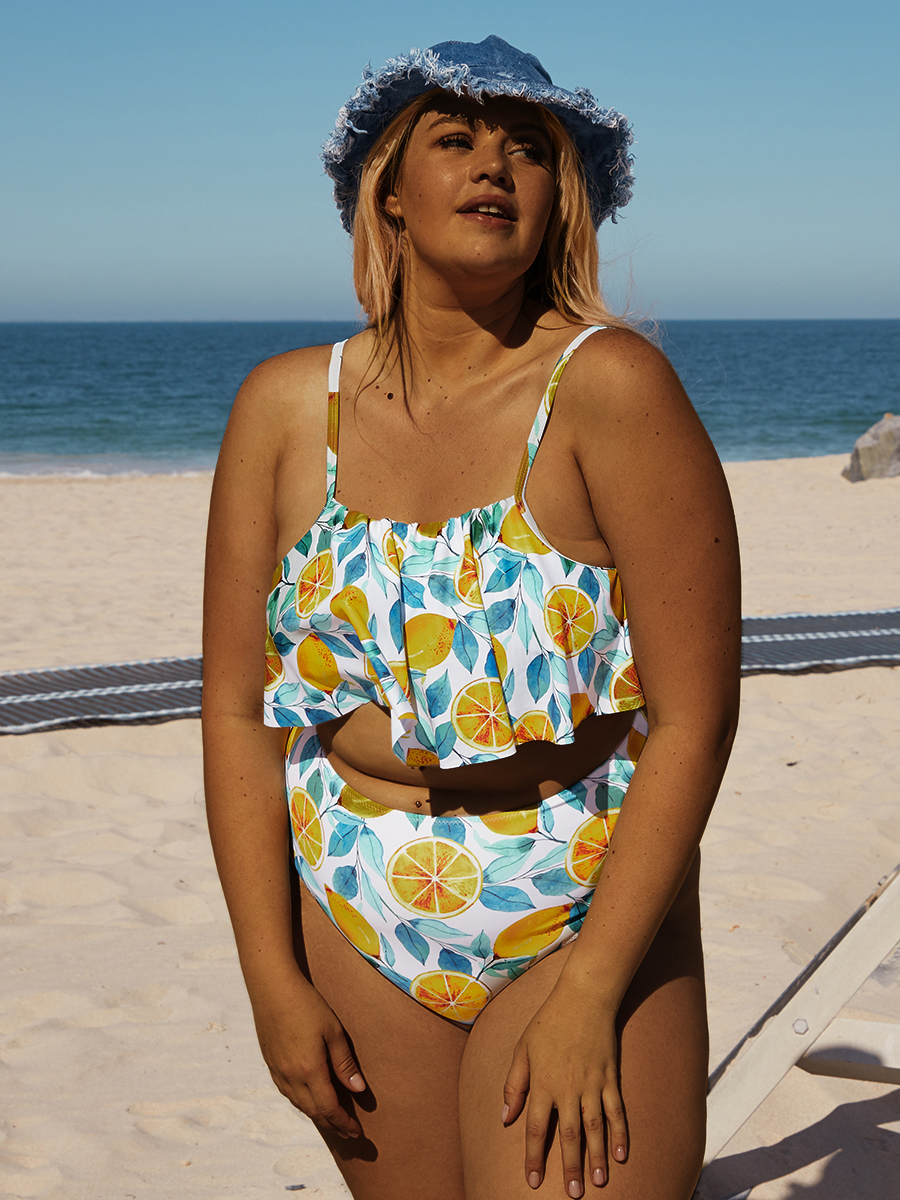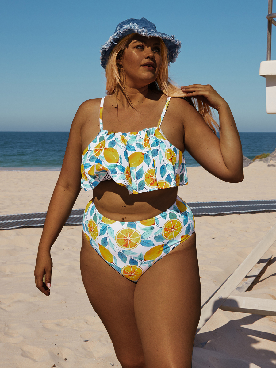 Plus Size Ruffle Fruit Printed Bikini Set