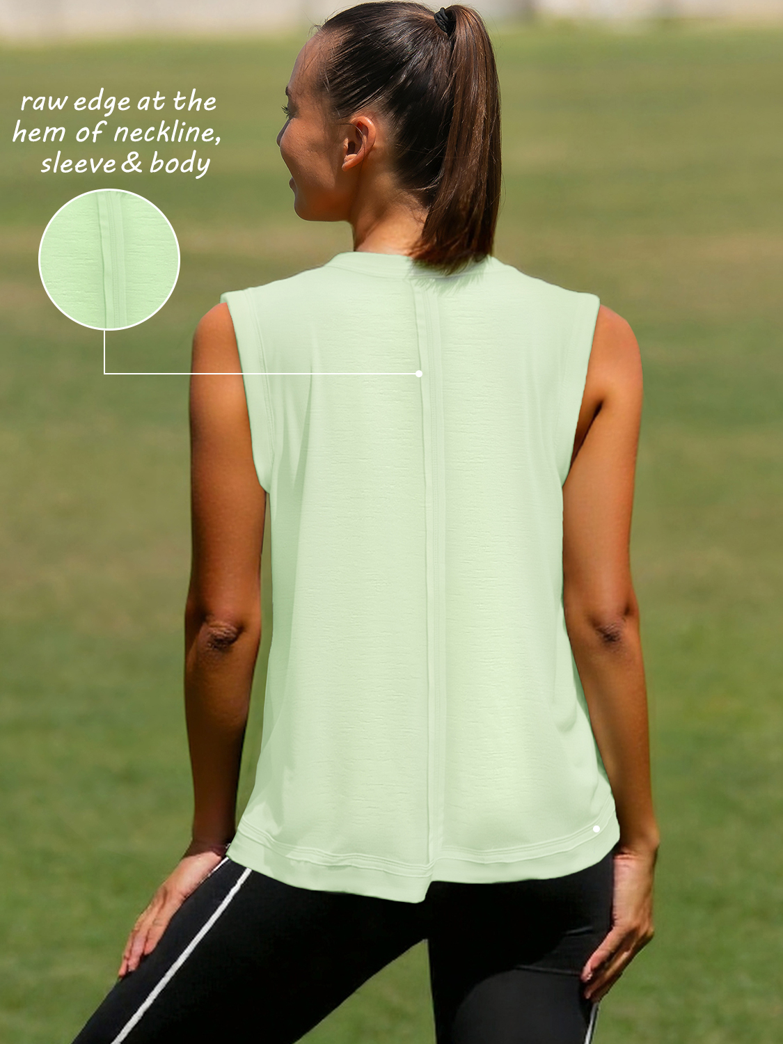 This lightweight sleeveless top is designed for movement, airflow, and all-day comfort. Made with quick-dry fabric and a subtle textured finish, it keeps you feeling cool and dry through workouts, walks, or casual active days. Clean lines and a relaxed fit make it easy to wear on its own or layer over a sports bra.